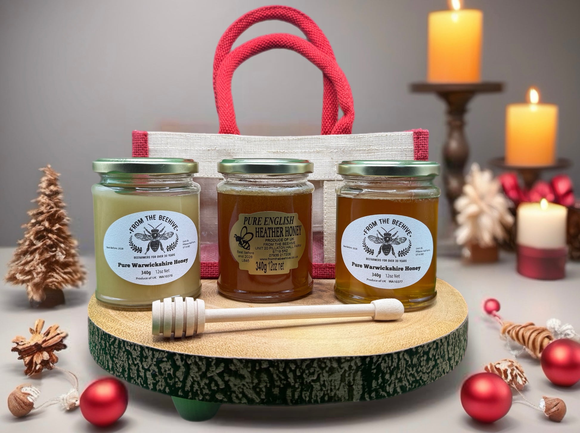 Share the simple luxury of nature’s sweetness with our Three-Jar Honey Gift Bag, a thoughtfully curated trio of our own farm-harvested honeys. Each jar captures a different season and floral note from our hives — from light and delicate to dark and full-bodied — offering a true taste of the English countryside.