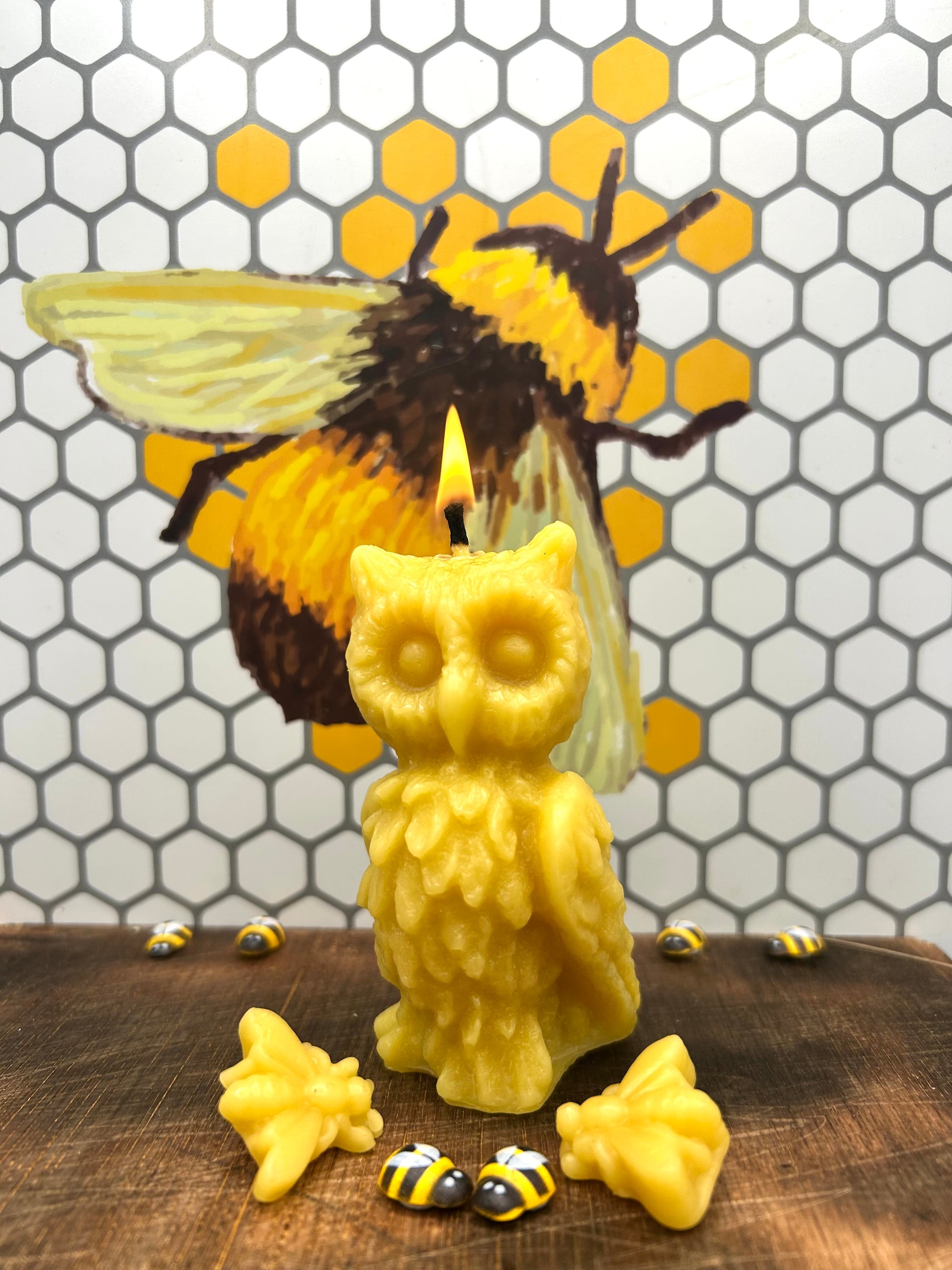 Our bees aren’t the only ones with wings around here, our Large Beeswax Owl Candle is sure to give you a hoot! But don’t get in a flap, these are 100% pure natural beeswax and are handmade… with a little help from our owl moulds 🦉