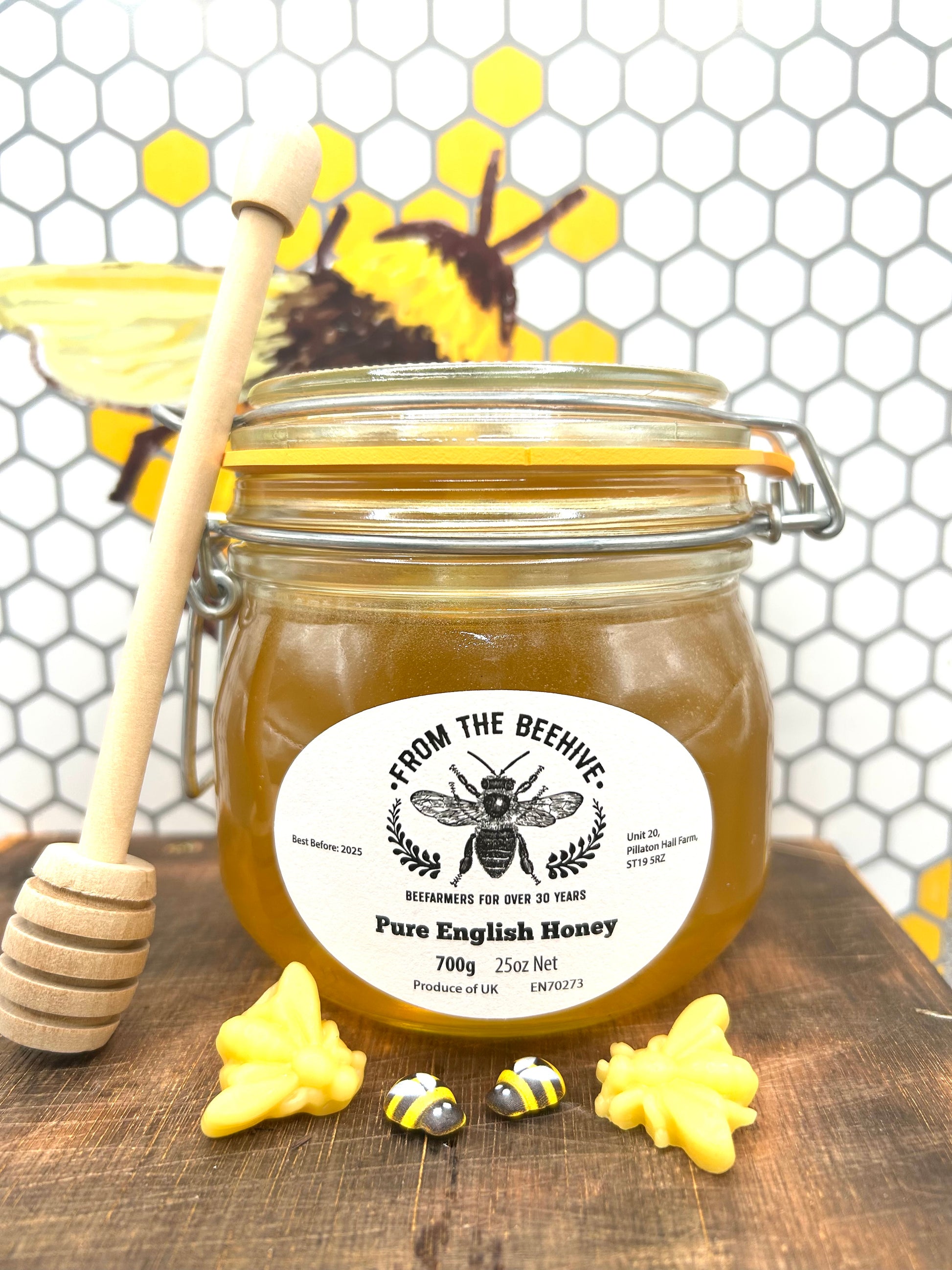 This runny honey was a labour of love for our brilliant bees in the Spring & Summer, we hope you gave them a wave when you saw them in your garden! Our runny honey is as great trickled over your cereal as it is in cakes and is 100% natural š