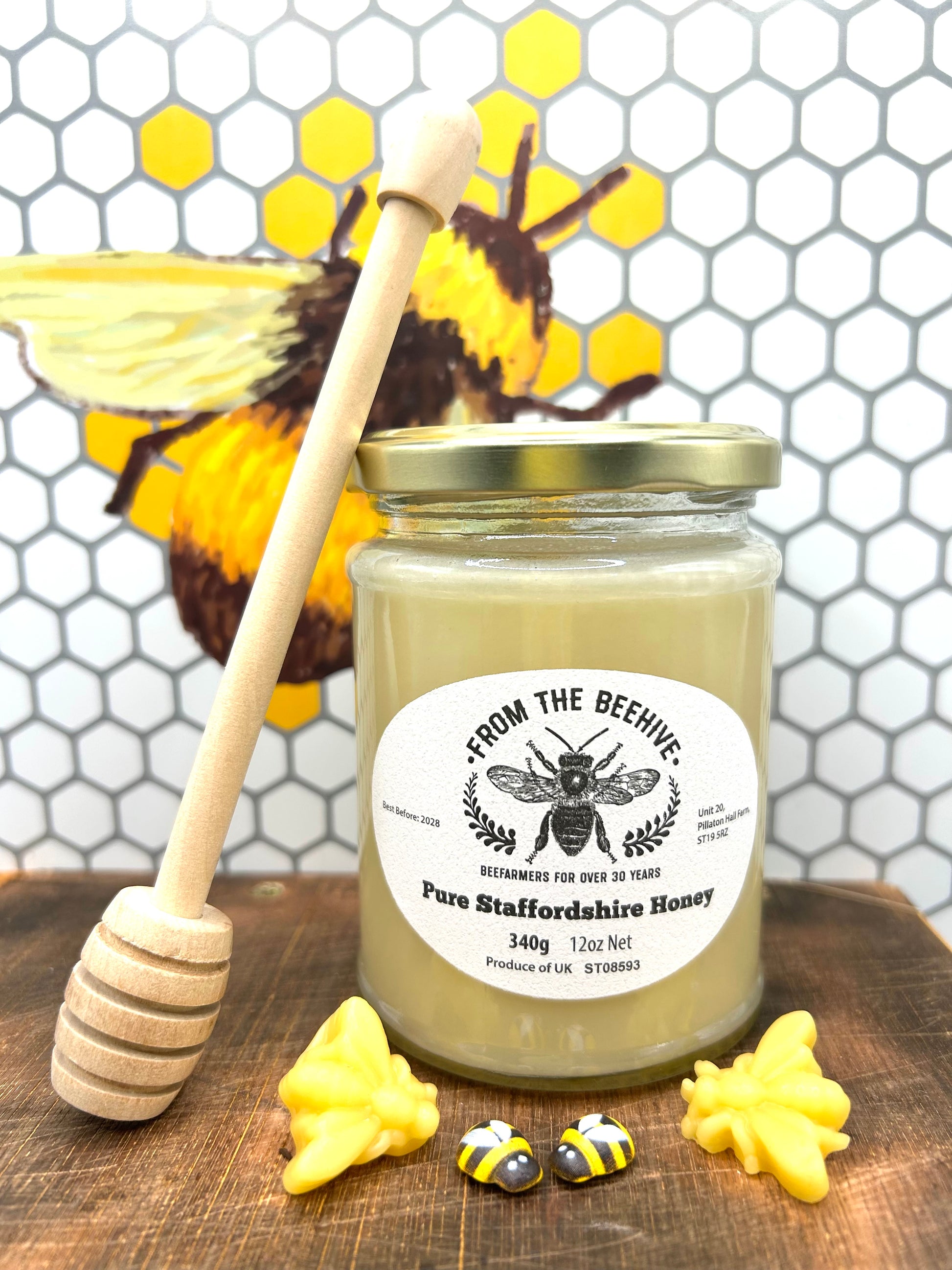 Did you know that there is no difference in the harvesting process for set honey and runny honey? Set honey crystallises the way it does because of the type of flowers that our Staffordshire bees have been collecting nectar from, which makes it perfect for spreading on your toast!